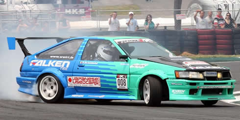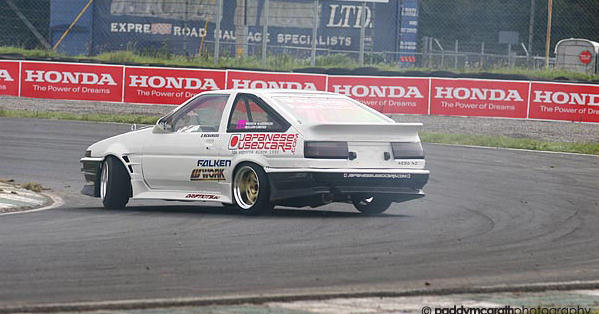 After the D1 World All Stars event in Irwindale last year Darren left his Blue AE86 Corolla in the U.S. so was without a suitable car to use in Europe, Japaneseusedcars.com came to the party and have supplied Darren a car to use for the European events meaning Darren will be running two cars this year. Both of Darren’s cars will be carrying Japaneseusedcars.com livery for the 2007 season.